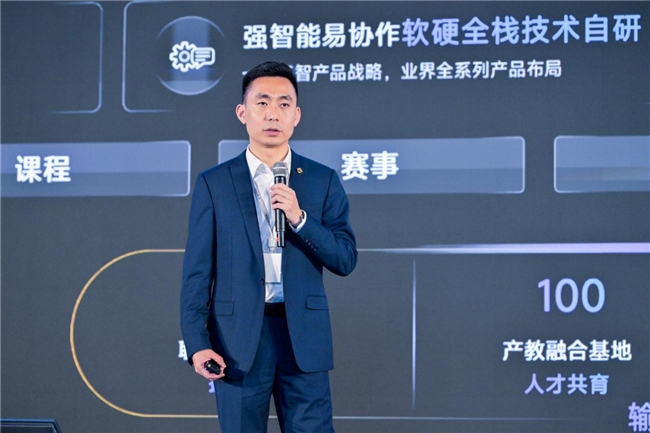 智元中国区副总裁、科研教育系统部部长刘牧云,带来报告《破壁共生,人才共育,构筑具身智能教育新生态》,全面解读了智元基于自身核心优势和行业丰富资源构建的科研教育蓝图。他详细介绍了 “百千万” 计划落地路径,以及智元面向教育全场景、面向不同层次院校、面向具身智能领域急需人才岗位的场景化解决方案、岗课赛证生态体系,为具身智能从拔尖人才培养、到工程型、技能型人才培养再到全民数智素养提升铺设了可落地的快车道。