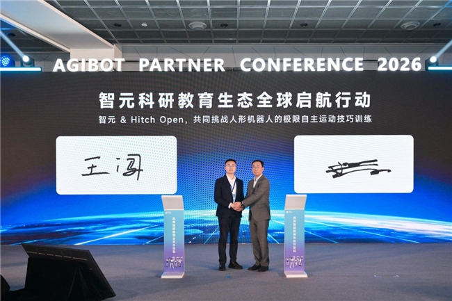 具身智能教育生态的构建不仅需要企业单点发力,也需要高校更加开放和深度融入,更需全球顶尖智慧的联动共创。智元与国际知名组织Hitch Open签约,双方接下来将展开深度合作,联合全球顶尖高校,共同挑战人形机器人的极限自主运动技巧训练。智元高级副总裁兼通用业务部总裁‌王闯和Hitch Open世界AI竞速锦标赛联合创始人Allen Yang教授完成战略合作签约。