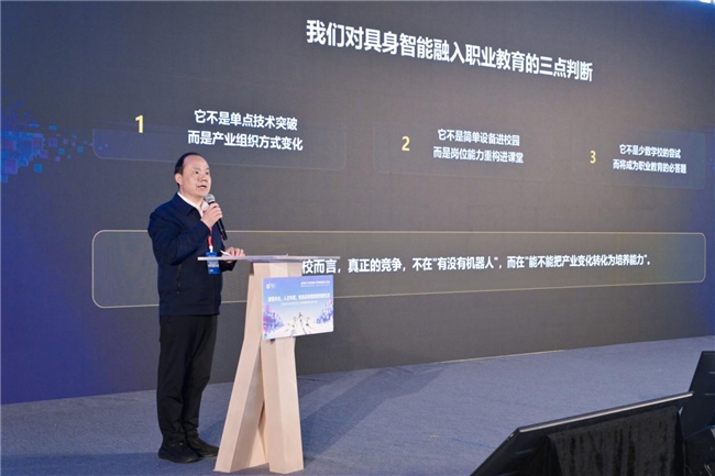 贵州交通职业大学校长刘雁先生在《职业本科建设具身智能产业学院的构想》中分享了极具贵州和交通特色的智能现代产业学院战略构想及建设规划,从“1331”顶层框架到落地机制,实现了行业属性职业本科在具身智能产业链中的精准卡位。