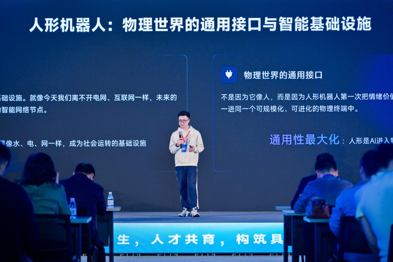 智元联合创始人、总裁兼CTO彭志辉带来《具身智能产业发展与技术生态》的前瞻分享,提出人形机器人未来会成为物理世界的通用接口与智能基础设施,希望高校的课程不只是教”机器人怎么动”,还要教”机器人怎么和人协作”;不只是教”算法怎么设计”,还要教”系统怎么部署”;不只是教”单机怎么工作”,还要教”集群怎么协同”。