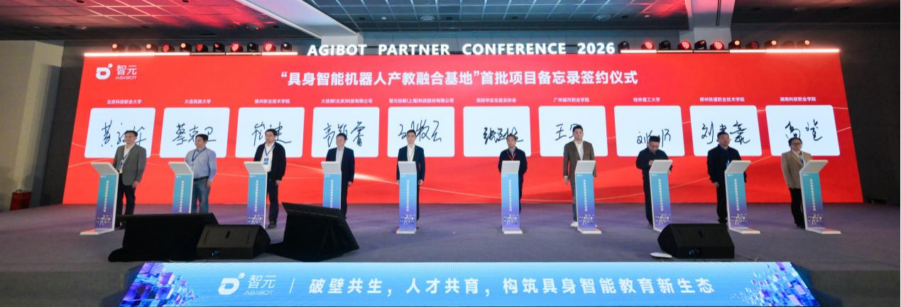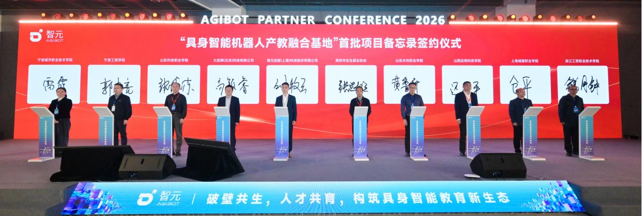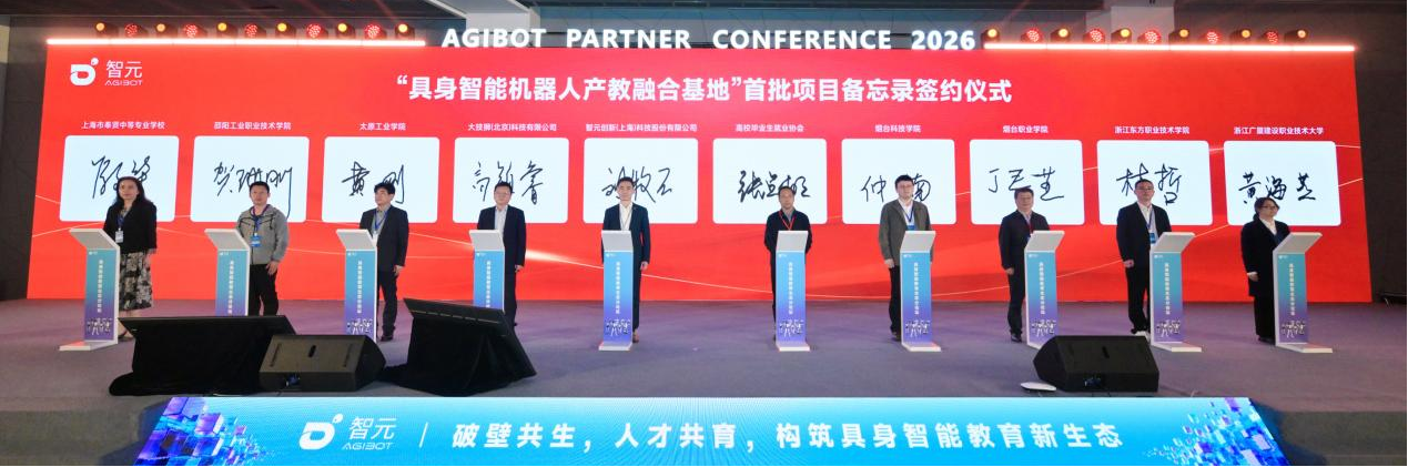 会议上,30个产教融合基地共建单位、7个现代产业学院示范项目与智元签署合作备忘录,标志着校企合作从规划迈向实质运营。